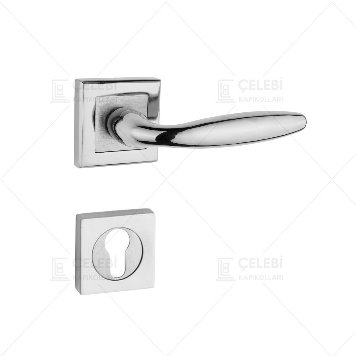 · Tombik Kapı Kolu Kare Rozetli Çelebi Kapı Kolları modellerimizde Birinci sınıf hammadde malzemesi olarak alüminyum ve sac malzeme kullanılmış olup üst yüzeyi saten nikel kaplamayla kaplıdır.